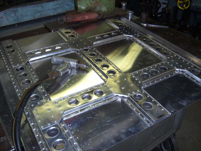 English Wheel oder Rollenstreckmaschine für gewölbte Bleche.